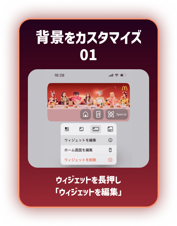 背景は全8種類!マクドナルドアプリのウィジェットを追加してホーム画面を楽しくしよう!XGメンバーの特別背景は期間限定!