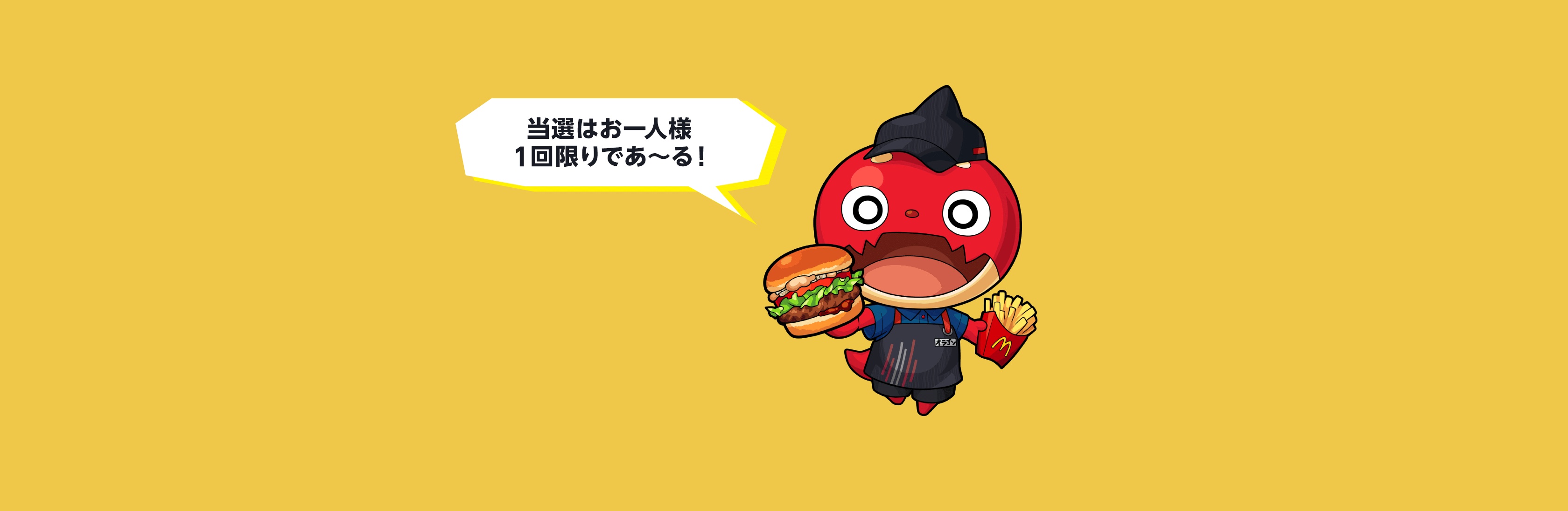 - ・通信機器、通信回線、Twitterのシステム障害、瑕疵等により本キャンペーンの提供が中断もしくは遅延し、または誤送信もしくは欠陥が生じた場合の参加者が被った損害について、日本マクドナルドはその責任を負わないものとします。