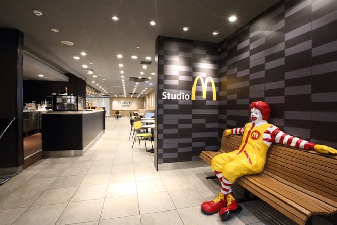 閑静な住宅街にひっそりとたたずむビル。その一室の扉を開けて中に入っていくと、見慣れたテーブルやイスが配置されていて、奥には機能的なキッチンも。外観こそまったく異なりますが、まるでマクドナルドの店舗そのものです。ここは私たちの“秘密基地”ともいえる総合研究施設「スタジオM」。店舗を完全に再現したエリアのほかには新商品の試作用キッチンなどを備えていて、新しい商品の開発やその製造工程の確認、店舗で使うPOPの視認性の検証、新しい厨房機器の動作確認…様々なことを行っています。つまり、皆さんが普段お店で体験されるサービスのほとんどはこの場所から生まれているのです。さらにCM撮影や新商品の記者発表会も行われ、ときには有名なタレントの方がやってくることも。