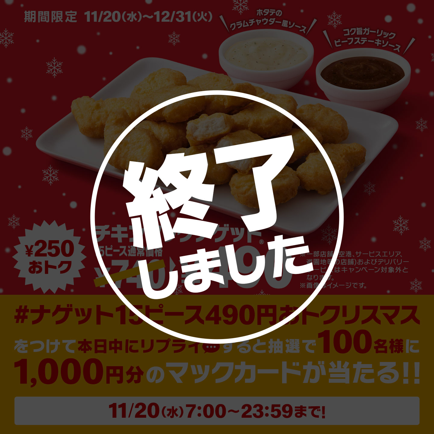リプライで当たる!「冬もチキンマックナゲット15ピース490円」キャンペーン(以下、「本キャンペーン」といいます)