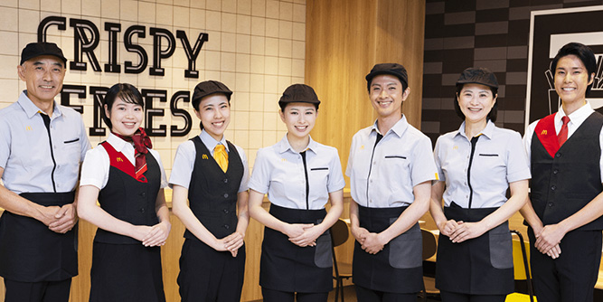 マクドナルドは、性別、年齢、さまざまな個性や背景を持った多様な⼈材が、個々の強みを最⼤限に発揮してイキイキと働ける職場の実現を推進しています。
