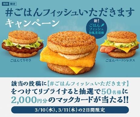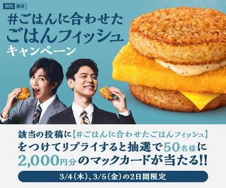 @McDonaldsJapanが投稿する、キャンペーン対象ツイートに、「#ごはんに合わせたごはんフィッシュ」を付けてリプライする。