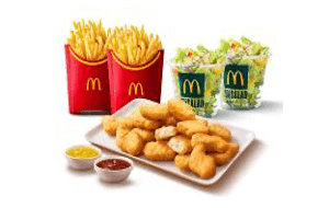 デリバリー限定「おもいっきりポテナゲ+選べる2品」は、「マックフライポテト®」Lサイズ2個、「チキンマックナゲット®」20ピースに加えて人気のサイドメニュー(サイドサラダ・えだまめコーン・シャカチキ・プチパンケーキ)からお客様のお好みやご気分に合わせた2品をお選びいただけるセットです。おうち時間が増えた今、ご家族みんなでシェアしながら楽しめる充実のセットを「マックデリバリー」限定で、お得な価格でご提供します。