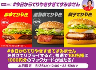 リプライして当てよう!「#明日からてりやきすぎてすみません」キャンペーン