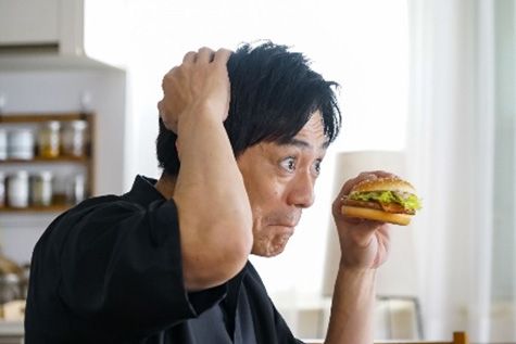 まさか…でしたね。自分でも自覚があるんですよ、どちらかというとオニギリみたいな顔をしているので。ただ意外と“パン派”ということは、身内には知られているんです。でもまさか、マクドナルドのCMに出させていただけるとは夢にも思いませんでした。驚きを隠せません。妻が年に一度の「てりたま」を楽しみにしているくらい、てりやきは家族でファンです。今回のお話をいただいたときは、家族で大喜びでした。