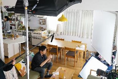 撮影は閑静な住宅街にあるハウススタジオで行われました。「赤辛てりやき」を食べるシーンでは「辛か~~!」と、博多弁で辛さとおいしさのハーモニーを全力でアピールした華丸さん。一緒に食べている父親役の俳優さんに向かって「すごい、てりやいてきた~!」「お父さんもヒリヒリでしょう~!?」と、さまざまな表情でセリフを発します。華丸さんの芸人ならではのユーモアあふれる演技に、向かいに座っていた俳優さんはカメラに映らない場所で必死に笑いをこらえ、周囲のスタッフも笑いたい気持ちを抑えながら撮影を続けました。
