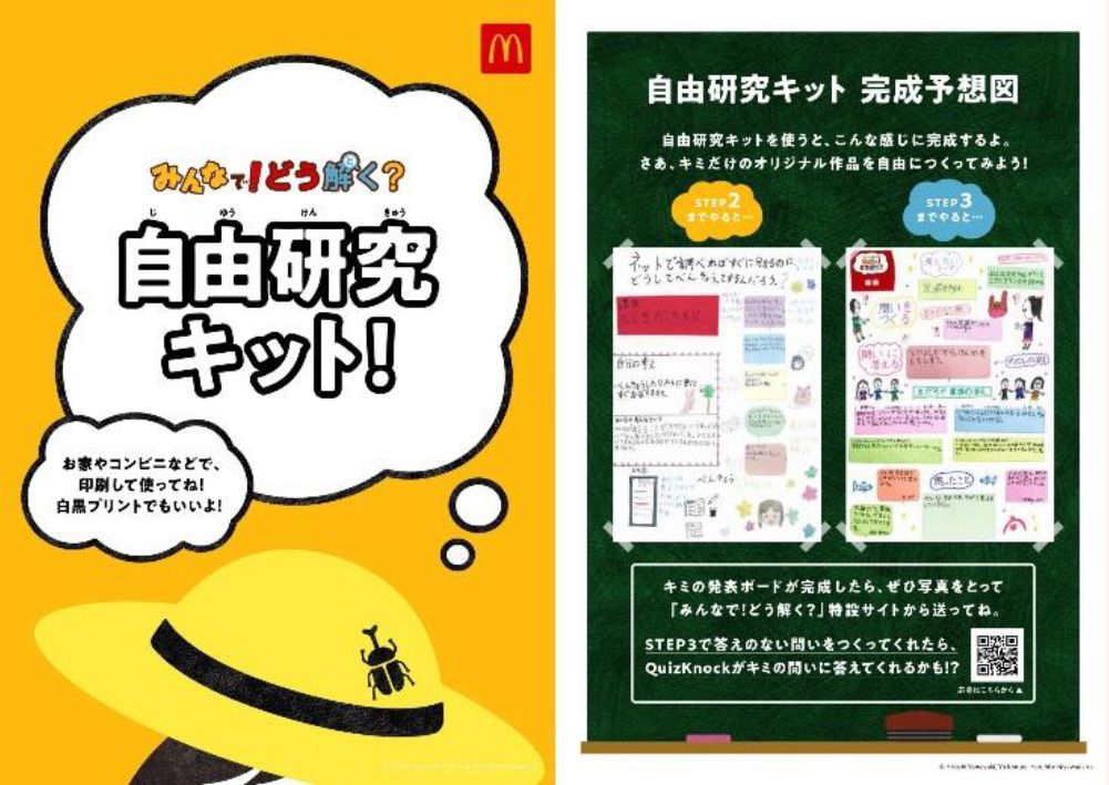 日本マクドナルド株式会社(本社:東京都新宿区、代表取締役社長兼CEO:日色 保)は、株式会社ポプラ社が発行する「答えのない道徳の問題 どう解く?」と協力し、子供たちの自由な発想や思考力を育むことをサポートするプロジェクト「みんなで!どう解く?」において、夏休みの自由研究として利用可能なキットを2021年7月12日(月)より特設サイトにて公開しました。