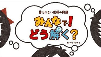 このプロジェクトでは、株式会社ポプラ社が発行する「答えのない道徳の問題 どう解く?」と協力し、子供たちの自由な発想や思考力を育むことによって「生きる力」を伸ばす支援をします。オンライン形式のワークショップや、マクドナルド公式Twitter・公式ウェブサイトを通して身の回りにある「答えのない道徳の問題」に対する解答を募集するなど、子供たちの自由な発想や思考力を育むサポートをしてきました。そして、全国の子供たちから寄せられた問題や解答をもとに、学校等の教育現場に向けたオリジナル教材として提供する他、ハッピーセットの本「みんなで!どう解く?byマクドナルド」を制作し、2021年12月頃に販売する予定です。