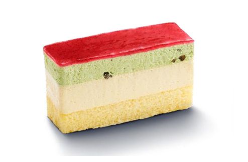 「ピスタチオレアチーズケーキ」は、香ばしいピスタチオペーストを使用したふんわり食感のムースと、レモン果汁が隠し味のなめらかな優しい甘さのチーズクリームの層の間に、カカオの香りと食感がアクセントのチョコレートチップを散りばめ、見た目にも華やかな甘酸っぱいカシスピューレのジェルを重ねたレアチーズケーキです。ピスタチオムースとレアチーズ、カシスの味わいが絶妙なバランスに仕上げました。