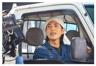 車の窓から遠くの妻夫木さんに声をかけるシーンの撮影では、作業着姿で頭にタオルを巻き、軽トラックに乗り込むという動作だけでも爽やかさを感じさせていた志尊さん。「妻夫木さんはどれくらい離れた場所にいる設定でしょうか?」など細かな打ち合わせを行い、「マック買ってきました~!」と大きな声で演技を披露すると、監督もすかさずOKの合図を送りました。