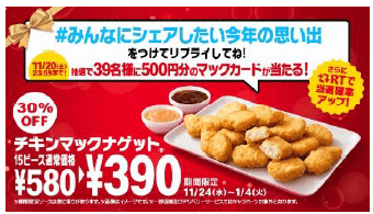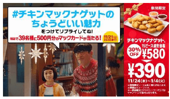 ーチキンマックナゲットはクリスマスシーズンも含めキャンペーンを行います。