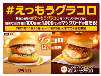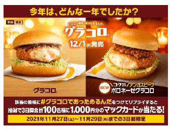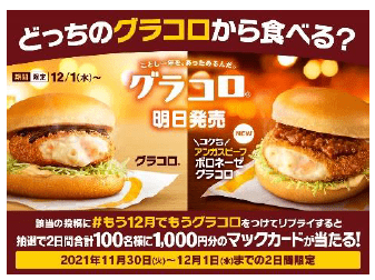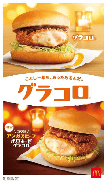 日本マクドナルド株式会社(本社:東京都新宿区、代表取締役社長兼CEO:日色 保)は、1993年の初登場以来、毎年冬の訪れを感じさせ、マクドナルドの一年を締めくくるバーガーとしてお客様にお楽しみいただいている「グラコロ」と、クリーミーなグラタンコロッケに完熟トマトと煮込んだ粗挽きアンガスビーフボロネーゼを合わせた新商品「コク旨アンガスビーフボロネーゼグラコロ」の2商品を、12月1日(水)より全国のマクドナルド店舗にて期間限定で販売いたします。
