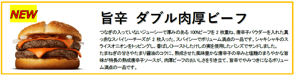 | 旨辛 ダブル肉厚ビーフ | 490円 | 790円(※2) | 2022年1月5日(水) ~2022年2月上旬 (予定) |