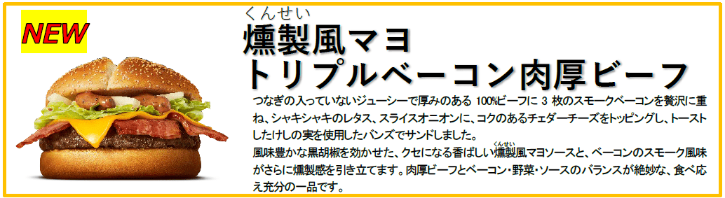 | 燻製(くんせい)風マヨ トリプルベーコン肉厚ビーフ |