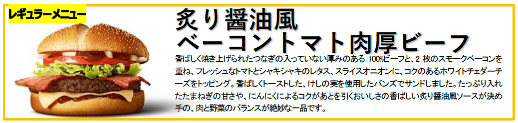 | 炙り醤油風 ベーコントマト肉厚ビーフ |