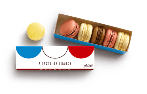 “McCafé by Barista”のマカロンシリーズは、本格的な味わいを1個からお手軽にお召し上がりいただけるとお客様からご好評いただいており、レギュラーフレーバー3種に加え、毎年さまざまな期間限定フレーバーをご提供しております。1年を通じ、季節のように移ろう期間限定フレーバーのマカロンをお楽しみください。