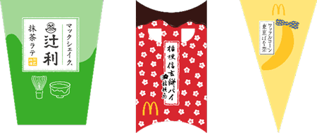 ちょい旅気分を見た目でも感じていただけるよう、京都の辻利抹茶、山梨の桔梗信玄餅、東京の東京ばな奈をイメージした、数量限定のマクドナルドオリジナルパッケージでご提供します。