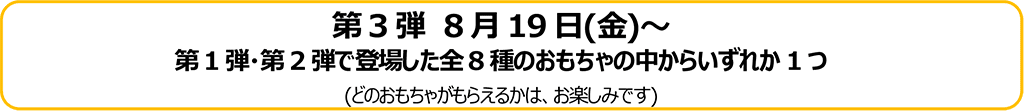 第1弾・第2弾で登場した全8種のおもちゃの中からいずれか1つ