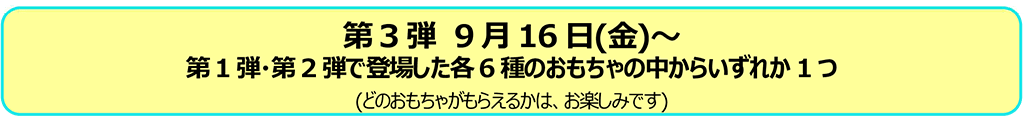 第1弾・第2弾で登場した全6種のおもちゃの中からいずれか1つ