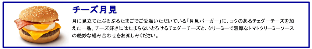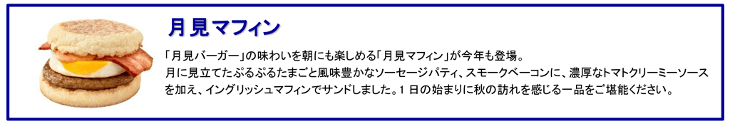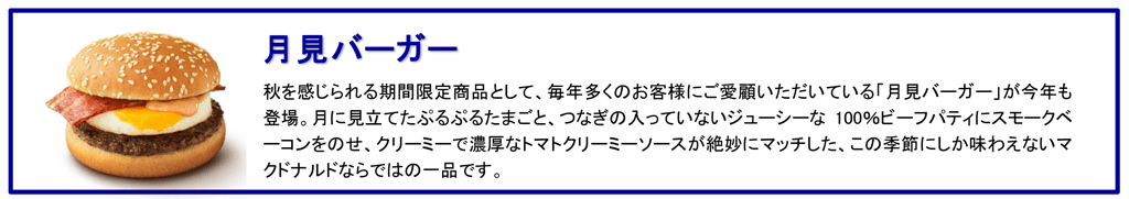 | 月見バーガー | 360円 | 660円(※2) | 2022年9月7日(水) ~10月下旬予定 |