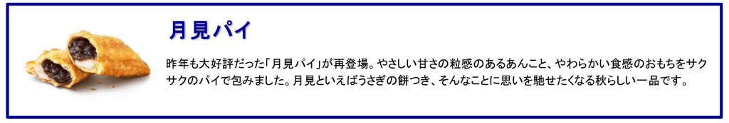 | 月見パイ | 150円 | - | 2022年9月7日(水) ~10月中旬予定 |