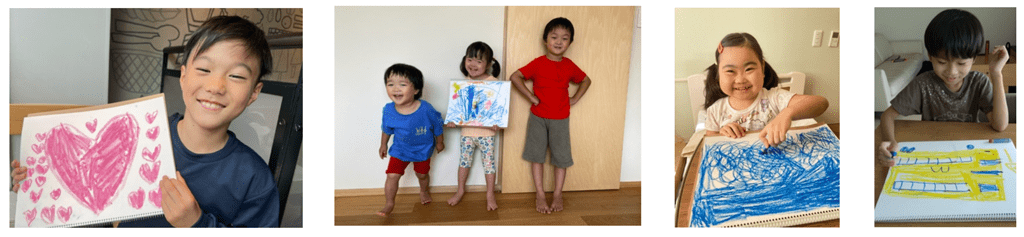 今年は「マックハッピーデー」のテーマとして“青いマックの日”を掲げました。青はDMH支援のテーマカラーで、DMHをご利用されているご家族が、少しでも穏やかな気持ちで病気の子供たちと過ごせるよう応援したいという想いが込められています。マクドナルド店舗では、青いバルーンやPOPなどで店内装飾をしたり、商品をお渡しするバッグを青い限定パッケージに変更するなど、マックハッピーデーを盛り上げます。本POPなど店内装飾のデザインには、DMHの現・元ご利用家族の18名のお子様に、背景や、家、星、ハートなどのモチーフをクレパスで実際に描いていただいた作品が採用されています。“青いマックの日”をマクドナルドと一緒に盛り上げるために、一生懸命描いていただいた、18名のお子様の作品も一緒に楽しんでいただければ幸いです。