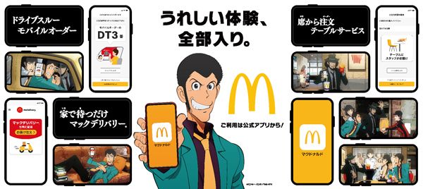 日本マクドナルド株式会社(本社:東京都新宿区、代表取締役社長兼CEO:日色 保)は、マクドナルド公式アプリに「ドライブスルーモバイルオーダー」、「マックデリバリー®」機能を統合、強化したことを記念して幅広い世代に人気の「ルパン三世」とのコラボレーション第三弾として、マクドナルド公式アプリに搭載されている様々な便利機能を訴求するTVCM「全部入りアプリ、起動せよ」篇を、1月10日(火)より放映いたします。