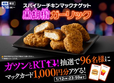 「スパイシーチキンマックナゲット 黒胡椒ガーリック」「チキンマックナゲット®」をご購入いただくことで お楽しみいただけます。(※5) | ||