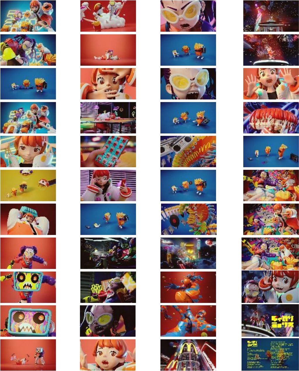 ミュージックビデオでは、『踊』のキャラクター「Odoちゃん」と『PAKU』のキャラクター「PAKUちゃん」にポップなアレンジを加え3D化し、友人という設定で描き、ネオン光る近未来を舞台に、「Odoちゃん」「PAKUちゃん」「ポテト3兄弟」の日常を切り取った物語になっています。マクドナルド店舗と隣接するOdoちゃんの家で仲良く『ティロリミックス』を歌って踊るシーンをはじめ、近未来のマクドナルド店舗や秘密基地のようなOdoちゃんの部屋でマックフライポテトを食べてくつろぐ場面、Odoちゃんのことが大好きでちょっかい出すPAKUちゃんと、いつものことで呆れつつ、それがまんざらでもないOdoちゃんのやり取りなど、ほのぼのとした2人のキャラクターや関係性にもご注目ください。ストーリーもお楽しみいただける本映像は、Adoさんとasmiさんによるパワフルで魅力的な歌声と相まって、3Dならではのライブ感あふれるダイナミックな作品となっています。