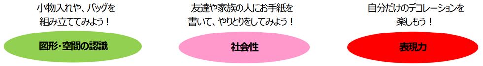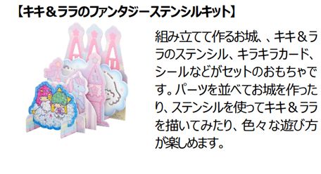デジタルメディアで、たくさんのファンタジー映像を見慣れた子どもも、ほんとうは自分の手でファンタジーの世界を創りたいと思っています。「リトルツインスターズ」の優しい世界を手で組み立てて、テーブルの一角に作れば、そこが、お絵描きや工作などの、想像や表現をする居場所となるのです。自分の心の居場所があれば、おうちの方の気持ちを思い浮かべて、お手紙を書きたくなるかもしれません。キキとララの世界を組み立てたら、「ここに何をしまうの?どうして、それが宝物なの?」などと、大切なものについてお話をしてみましょう。