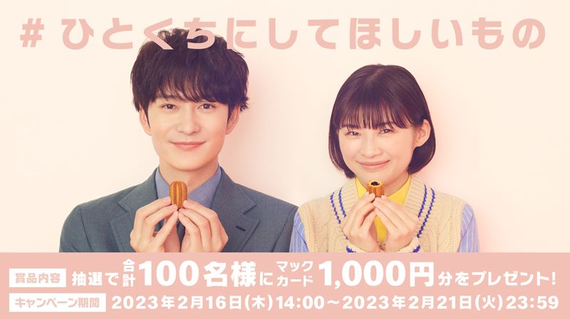 また、2月21日(火)より放映する新TVCMは昨年に引き続き、岡田将生さんと伊藤沙莉さんが会社の同僚役を演じます。再び「ひとくちチュロス」をめぐり、ひとりじめしたい伊藤沙莉さんと、どうにかひとつ分けてもらいたい岡田将生さんの心理戦が繰り広げられます。「ひとくちチュロス」をめぐるコミカルなやりとりにご期待ください。