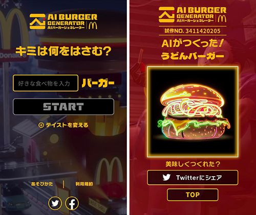 ※本サービスでは著作権等の侵害を防ぐために、マクドナルドの過去のハンバーガーの画像や食材画像などを学習した上で、食材や料理名以外の言葉を受け付けないようにしています。
