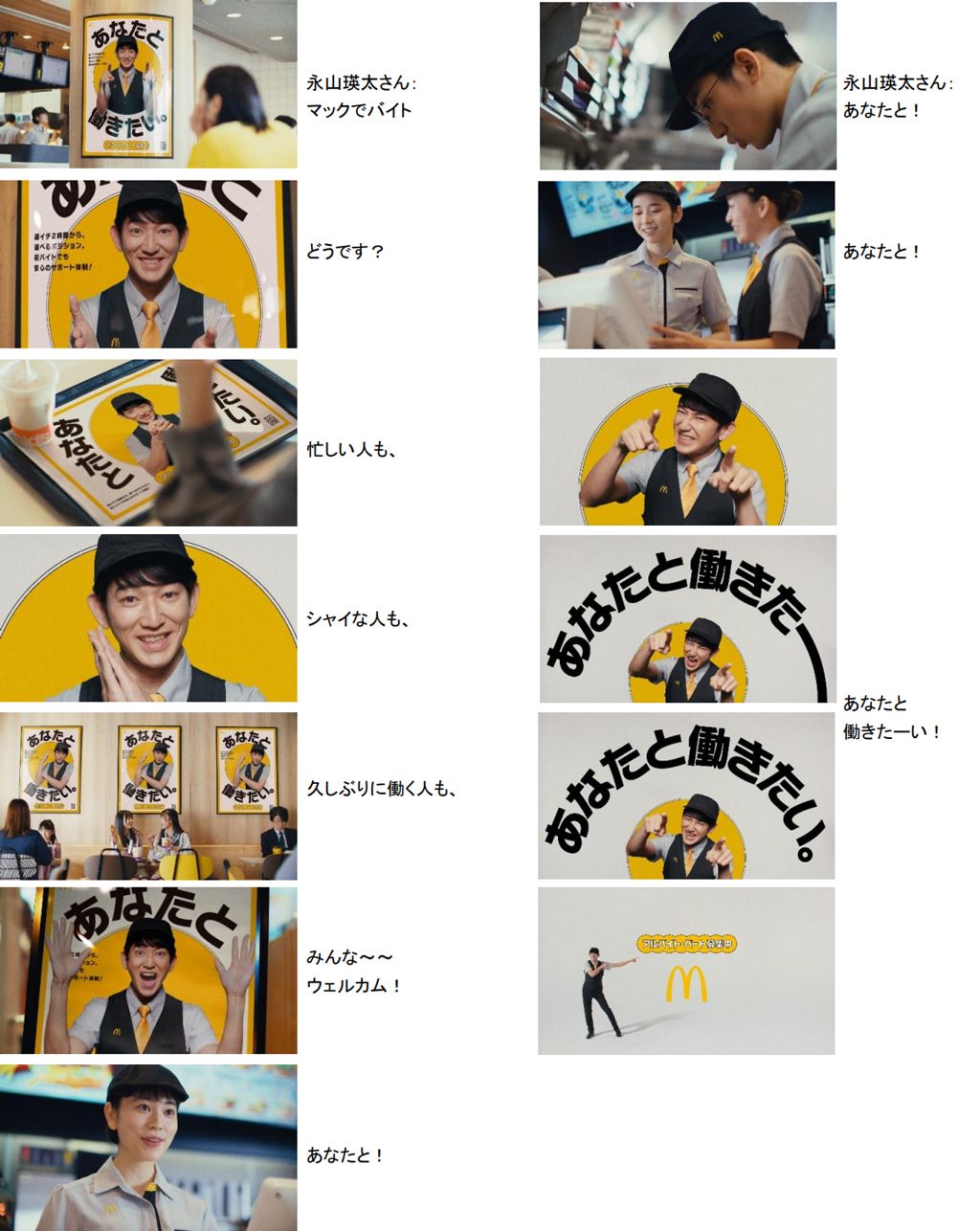 本「あなたと働きたい。」キャンペーンでは、永山瑛太さんが出演する新TVCM・WEB CMシリーズを3月1日(水)より放映・配信いたします。色々な個性・考え方を持つ多くの新しい仲間たちを待つエイタ店長が、“短時間から働きたい”方には「#2時間スキマック」、“プライベート優先”な方には「#推しごと最優先」、“予定の合間にすぐ行けるようなアクセスが良い”条件が大事な方には「#寄り道バイト」などと、個性豊かな多様な要望を持つ“あなた”に合わせた魅力的な言葉で、「あなたと働きたい。」と誘ってきます。「あなたと働きたい。」というメッセージは、色々な個性あふれる方と一緒に、大好きなこのお店を楽しくしたい、色々なクルーと働きたい、そんなエイタ店長の気持ちをストレートに表したものとなっております。