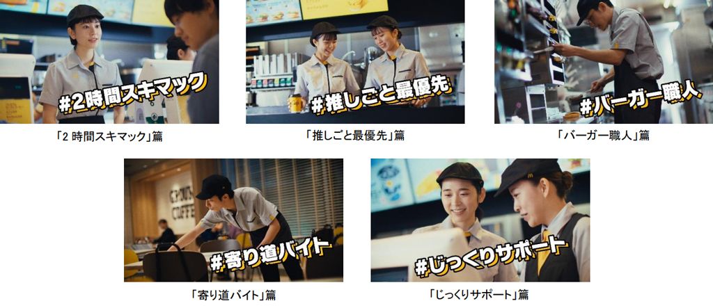 TVCMに加えて、マクドナルド公式サイトや、公式YouTubeにて、5つのWEB CMを限定公開いたします。色々な個性・考え方を持つ多様な“あなた”にも響くような、魅力的な言葉で「あなたと働きたい。」と誘う5つのWEB CMをぜひお楽しみください。