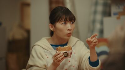 CMのラストカットでは、オオカミ女やフランケンシュタインなどの仲間たちがヒカリ役・伊藤さんの引越しを手伝わされる様子を見に来た夜マック店長が、見つからないように腹筋で身体を曲げて木に隠れようとします。そのシーンでは、妻夫木さんが実際に腹筋して見つからないような姿勢で撮影が行われ、テイクを重ねるごとにさすがの妻夫木さんも徐々にキツそうな表情を浮かべはじめました。最終テイクの頃には、妻夫木さんから監督に向かって“どうでしょう”“OKだよね!?”と訴えるような視線や表情も見られながら、無事に撮影を終えました。CM本編でも、腹筋姿勢を保って耐えながらも思わず「クッ・・クッ・・」という妻夫木さんの声が漏れる、夜マック店長の“本気”が垣間見えるシーンが見られます。ぜひ本編で確かめてお楽しみください。