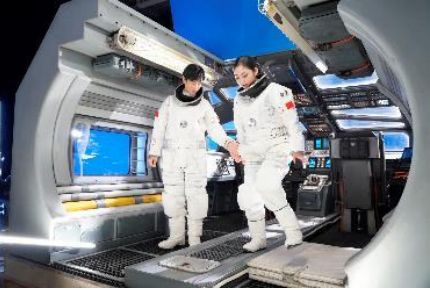 本番はスタジオの照明を全て落とした上で、コックピットを外側から完全に封鎖。堺さんと常盤さんを照らすのは、船内の蛍光灯や計器の明るさと、周囲の宇宙空間から差し込む光のみという状態にすることで、実際の宇宙飛行に近い状況を演出しました。小惑星群に向かっていく直前、船内に緊張が走るシーンでは、昔マニュアル車の免許取得時に経験した、坂道発進を思い出したという堺さん。当時は独特の半クラッチ操作に苦労したそうですが、今回は「僕らは、何歳だって挑戦できる」という自らを奮い立てるセリフと、常盤さんの「いつだって、今日が一番若いんだ」というセリフの後押しも受けて、迫真の演技を披露し、見事一発OKを獲得しました。