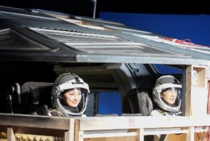 宇宙探査をテーマにした今回の撮影に当たり、スタジオに宇宙船のコックピットを建て込みで再現。船内にはリアリティーあるデザインを意識した計器やモニター、操縦桿、スイッチなどを配置しました。本物さながらに細部まで作り込まれた船内を、さっそくコックピットから興味津々見渡した堺さんと常盤さん。「なんかいろいろボタンをいじってしまいそう」「操縦桿もリアルで今にも動き出しそうですね」などと、まるで宇宙に憧れる少年少女のようなキラキラした眼差しで、色々と言葉を交わす姿が見られました。