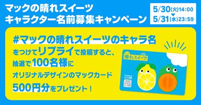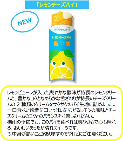 じめじめとした梅雨の季節にも晴れやかな気分になっていただきたいとの想いから、“マックの晴れスイーツ”として爽やかな味わいにこだわったスイーツ2種が、数量限定の色鮮やかなデザインのオリジナルパッケージとともに期間限定で登場します。