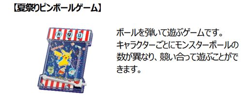 第1弾には、水に浮かべたヨーヨーをモチーフにしたディスクを釣り上げて遊ぶ「ヨーヨー釣り」や、得点を競って遊ぶ「輪投げゲーム」など4種が登場。第2弾からは、ポケモンのアイコンを水に浮かべ、ポイを使ってすくう「ポケモンすくい」や、水鉄砲でモンスターボールの的を倒して遊ぶ「まとあてゲーム」など4種が登場します。