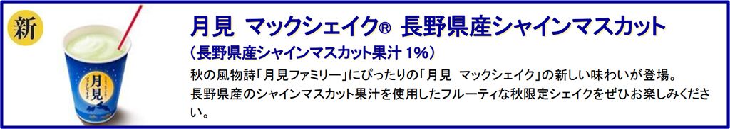 | 月見 マックシェイク® 長野県産シャインマスカット (長野県産シャインマスカット果汁1%) |