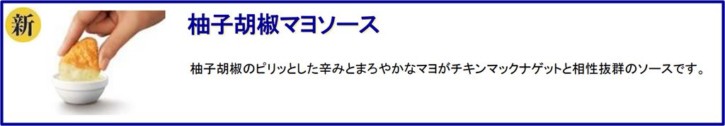 | 柚子胡椒マヨソース | 「チキンマックナゲット」を ご購入いただくことで お楽しみいただけます。(※5) |