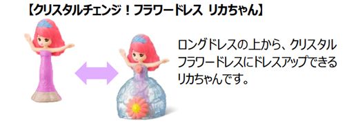 ハッピーセット「リカちゃん」は、ヘアアレンジやドレスの着せ替え&色遊びが楽しめるリカちゃんのおもちゃです。第1弾はハッピーセット「リカちゃん」史上最も髪が長い、「スーパーロング ヘア」の「リカちゃん」全4種です。髪を結い、お手持ちのへア小物を使ってヘアアレンジを楽しむことができます。スーパーロングヘアは結びやすく、初めてヘアアレンジをするお子様にもおすすめです。第2弾はロングドレスとふんわりシルエットのクリアドレスの重ね着&着せ替えで色遊びを楽しむことができる、「クリスタルチェンジ!」リカちゃん全4種とひみつのおもちゃ1種です。