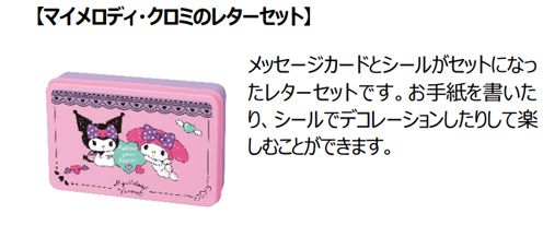 ハッピーセット「マイメロディ・クロミ」は、株式会社サンリオのキャラクター「マイメロディ」と「クロミ」という対照的な2キャラクターをモチーフにした全6種類のおもちゃです。第1弾は、お絵描きやお手紙遊びを楽しめる「マイメロディのステンシルセット」や、「マイメロディ・クロミのレターセット」などが登場します。第2弾は「クロミのシールディスペンサー」などのシールを使ったデコレーションが楽しめるグッズです。また、パッケージのQRコードを読み込むと、マイメロディ・クロミにお手紙を送って返事が届く「マイメロディお手紙チャット」もお楽しみいただけます。