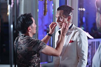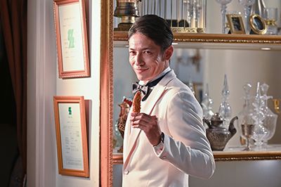 CM冒頭、タキシード姿でパーティーに潜入していたスパイが変装用の顔マスクを剥がすシーン。マスクを被った状態の玉木さんが「なんか不思議な感じですね」と周囲をキョロキョロ見回すと、首から下は玉木さんでも、首から上はまったくの別人という姿を目の当たりにしていた監督から「僕たちも同じく、不思議な感じです」という声が。玉木さんが「そりゃそうですよね(笑)」と応じると、スタッフからも笑いが上がりました。