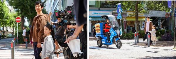 ◇子供たちのハートをわしづかみ?“青い人気者”の登場に盛り上がる撮影現場
