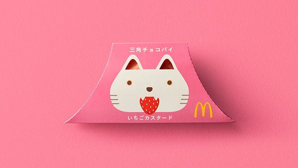 「三角チョコパイ いちごカスタード」はいちごをくわえた白ネコをデザインした数量限定パッケージで商品をご提供いたします。通気口の穴を三角のネコ耳にすることで見た目も可愛くデザインしました。現在販売中の「三角チョコパイ 黒」、期間限定で販売した「三角チョコパイ ザクザクミルクキャラメル」のパッケージも「ネコのデザインが可愛い」や、「思わず惹かれるデザイン!」など、多くのお客様から好評の声をいただいております。可愛らしいパッケージとともに「三角チョコパイ」をお楽しみください。