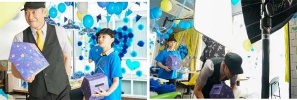 営業中のマクドナルド店舗を“青いマックの日”仕様に装飾した撮影現場では、たくさんの風船やPOPで彩られた賑やかな飾りつけをうっとりとした表情で眺めていた上國料さん。初共演となる杉本さんが店長のユニフォームを着て登場すると、にこやかにあいさつをかわし、監督との打ち合わせを開始。2人が並ぶ姿は店長とクルーそのもので、完全に店内の雰囲気に溶け込んでいました。