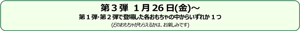 第1弾・第2弾で登場した全6種のおもちゃの中からいずれか1つ