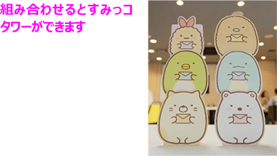 オリジナルメモシート、便箋、プロフィールカード、シールが、かわいいすみっコぐらしのキャラクターケースに入ったセットです。受け取る友達を想像して、気持ちを込めて手紙を書き、プロフィールカードを通して、自分のことを紹介する練習ができます。複数集めると、積み上げることができ、裏側はすみっコたちのおうちのデザインです。