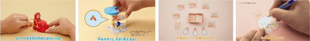 さらに、おもちゃの外箱のQRコードをお手元のスマートフォンで読み込むと、すみっコたちのオリジナルのミニゲーム「おてがみ わけわけゲーム」で遊ぶことができます。